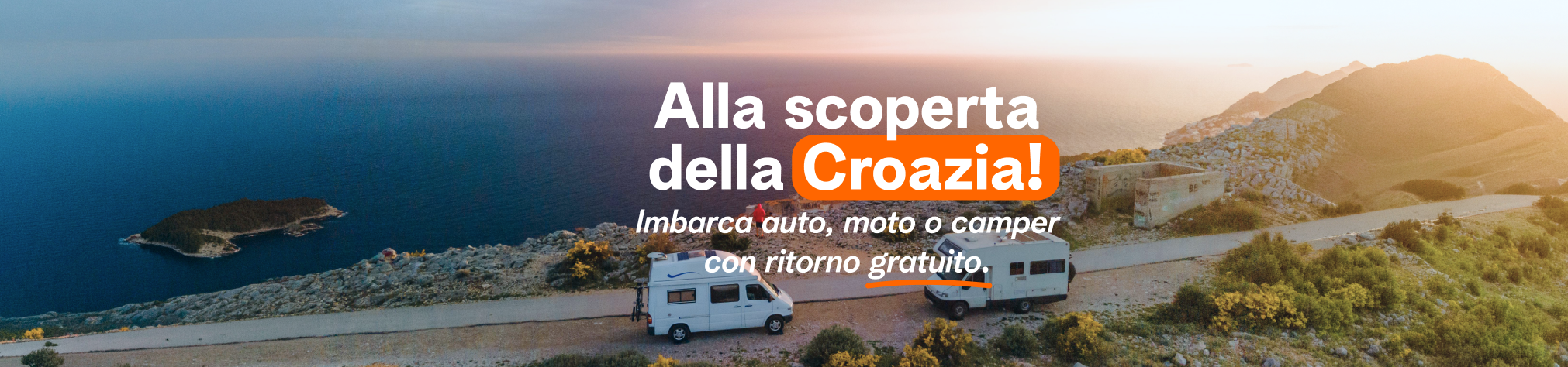 La grande novità della stagione è la promo dedicata ai viaggi verso la Croazia: il ritorno del tuo veicolo è gratis (escluso supplementi e diritti). Un vantaggio esclusivo che rende la vacanza ancora più conveniente e ti permette di vivere il tuo viaggio senza pensieri, ottimizzando costi e libertà di movimento.
