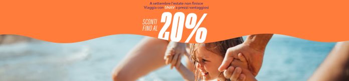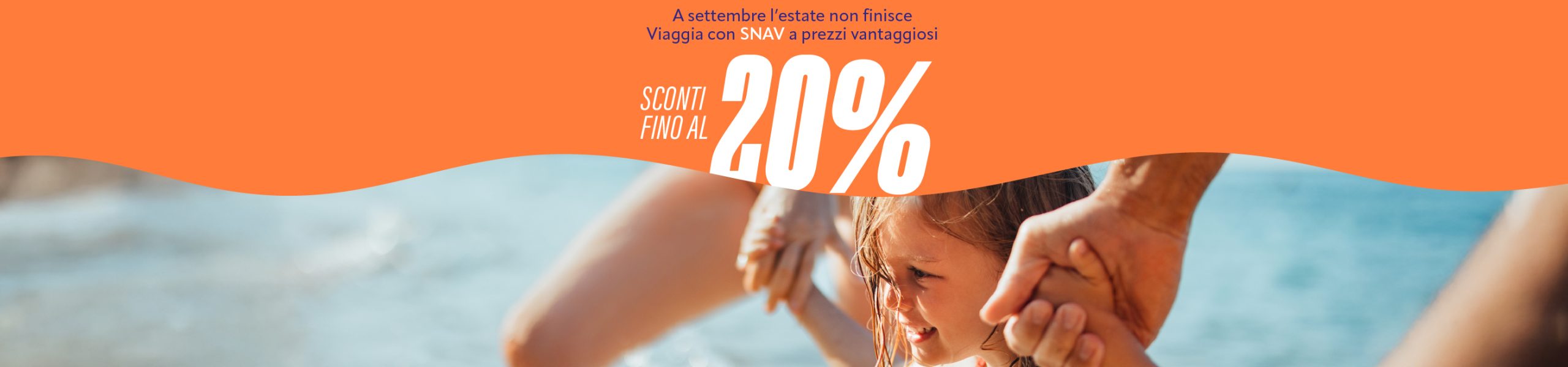 Non lasciare che l’estate finisca. Grazie agli sconti SNAV fino al 20% (esclusi supplementi e diritti) settembre è il mese perfetto per concederti il viaggio che desideri. Che sia la Croazia, le Eolie, Ponza o Ventotene, con SNAV la tua prossima avventura inizia dal mare.